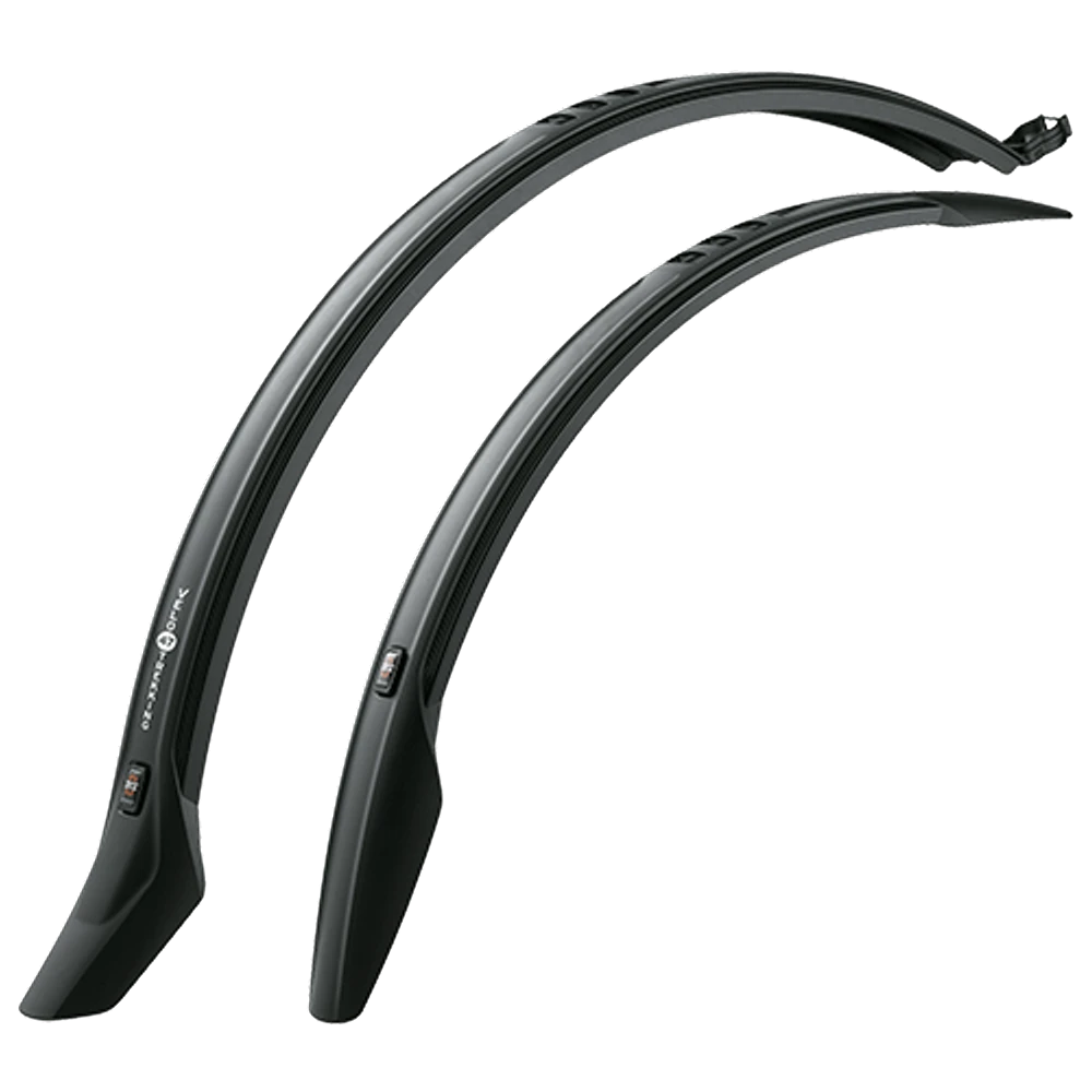 Bestehend aus schlagfestem, schwarzem Hochleistungskunststoff mit integriertem SKS-Logo, werten die Schutzbleche das Fahrrad auch optisch auf.
