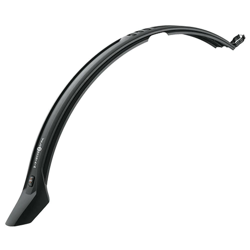 Bestehend aus schlagfestem, schwarzem Hochleistungskunststoff mit integriertem SKS-Logo, wertet das Schutzblech das Fahrrad auch optisch auf.